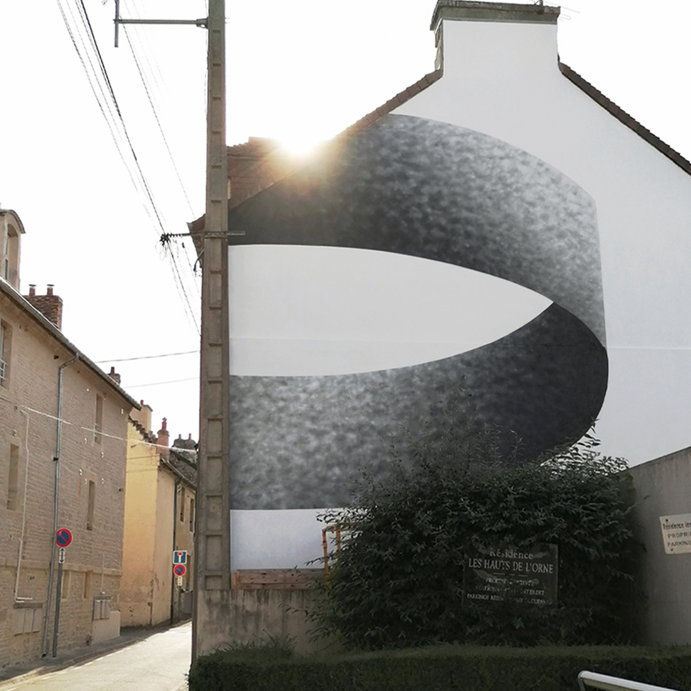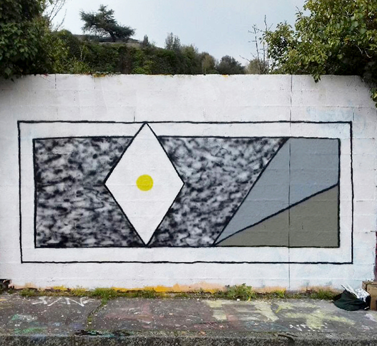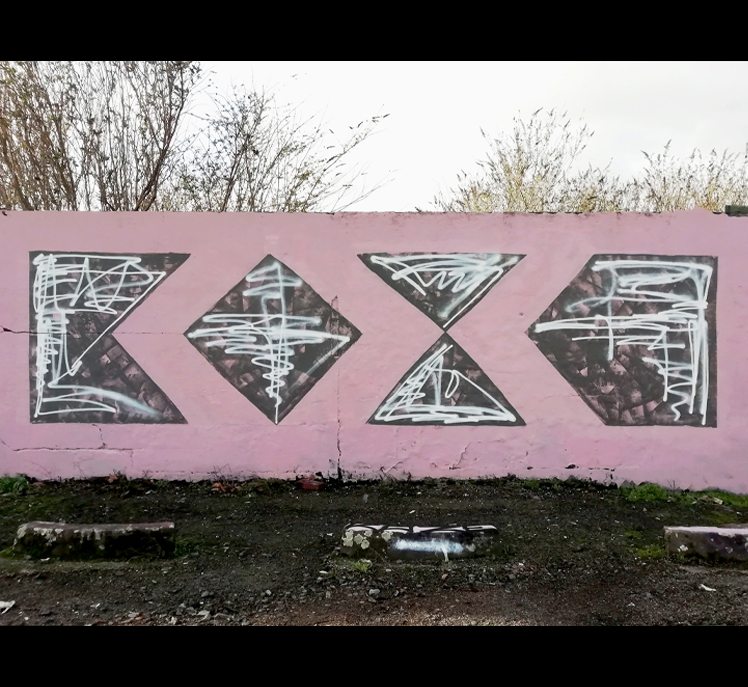 J’ai commencé à graffer en 2016 sous l’influence du lettrage et de l’abstraction. Sans sur-contour, lights, ni 3D, une typographie minimaliste servait mes compositions, avec des lignes de forces propices aux variations de motifs. Rapidement, la forme et le fond se sont émancipés au profit de peintures géométriques ou informelles. D’une part, j’aime peindre des structures en volume, habillées d’un revêtement assujetti aux lois de cette forme. D’autre part, je cherche aussi à produire des textures libres qui ont une vie propre grâce à des jeux de dispersions, des changements d’échelle, de mouvements ou de contrastes.